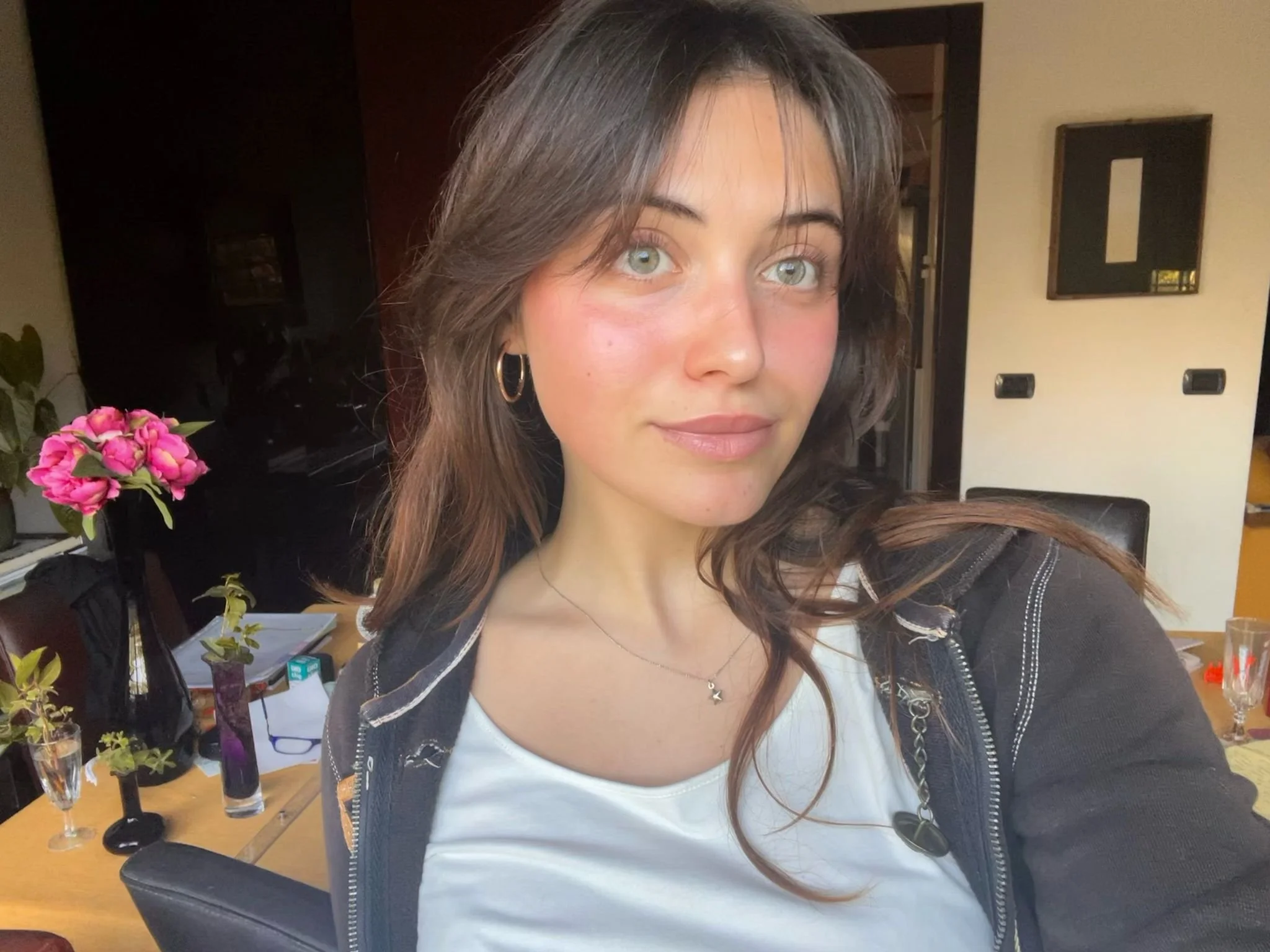 And at the center of it all? A show-stopping gown entirely embroidered in punto croce (cross-stitch). With a sky-blue base bursting into pink floral cascades, the dress features an embroidered neoclassical vase, making the piece feel like a 3D fresco.